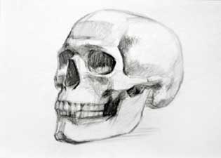 Прежде, чем вы начнёте рисовать портрет, мы рекомендуем практиковаться рисовать человеческий череп в разных видах, таких как вид спереди, вид сбоку и 3/4 вид (как показано на видео). Это является основой рисования портрета. Посмотрите на рисунок, который показывает правильные пропорции человеческой головы. Изучите пропорции перед тем, как вы будете рисовать 3/4 вид черепа. Попытайтесь приобрести модель черепа (обычно их можно найти в магазинах с художественными товарами), и рисуйте лучше с модели, чем с фотографий. Уделяйте пристальное внимание пропорциям при рисовании. Первый этап - построение конструкции - является самым критическим этапом. Для серьёзных студентов мы рекомендуем также приобрести хорошую книгу по анатомии и тщательно изучить её.